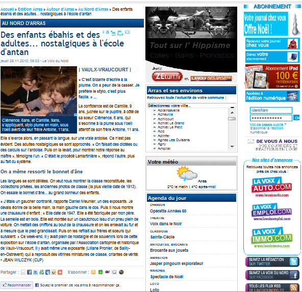 Parution dans la « voix du nord » le 25 novembre 2010