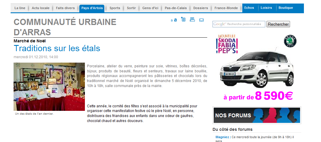 Article paru pour annoncer le marché de Noël de Roclincourt le 5 décembre 2010.