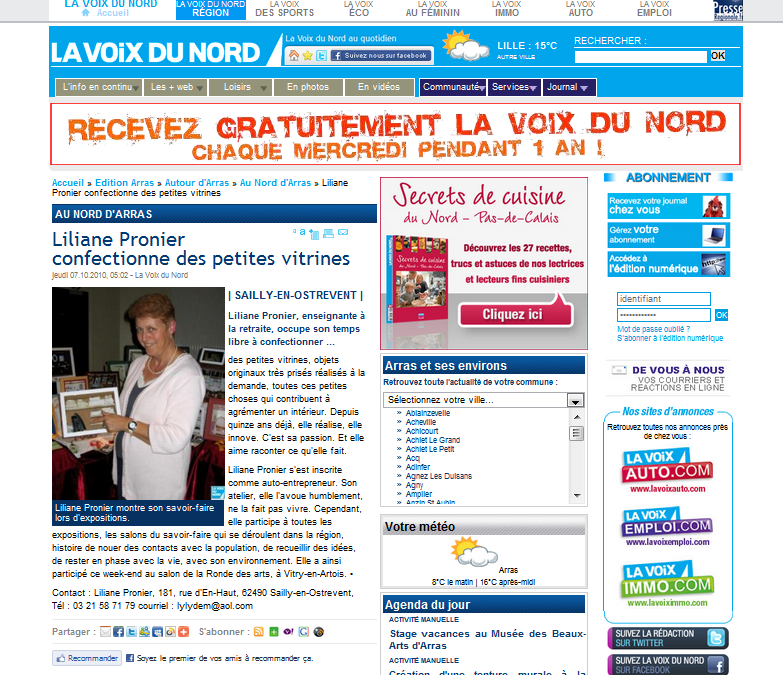 Parution dans la « voix du nord » le 7 octobre 2010